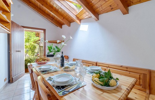 Arrive here and feel at home. Authentic wooden furniture welcomes you on two floors in cozy rooms, from which you can also access a small and a larger terrace. Sunbathe here or gather on the covered terrace for al fresco meals.