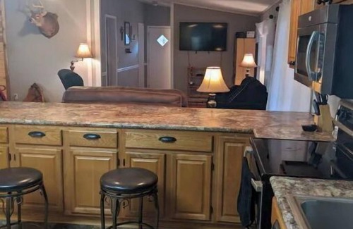 The space: Our home is a two bedroom home and two baths. There is also a pull out sofa in the living room with linens and blankets in the closets. There is a fully stocked kitchen with a crockpot included. Full size washer and dryer. A deck runs along the entire back of the home which overlooks Cherry Creek. There is a charcoal grill. We also have a fire pit (wood is located in the shed) and covered parking area for two but plenty of other places to park as well. If you follow the path down past the old chicken coop to the right of the house, you will be able to enjoy our small waterfalls.