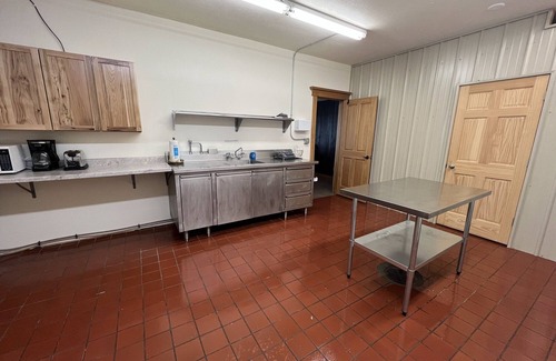 The Flyway Lodge features a large living, dining and bedroom area with vaulted ceilings, a king size log bed, two sets of twin log bunk beds (strong enough for adults), a log dining room table with 4 chairs and a bench, brown leather reclining couch, loveseat and rocker recliner and a 55” Smart TV. Large bathroom with tub/shower, vanity and toilet. The kitchen is fully equipped with a stainless kitchen sink, refrigerator, stove, oven, microwave, coffee pot and utensils.