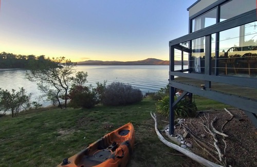 Located 70 minutes drive south of Hobart, Surveyor's Cottage is far enough to feel like a getaway. The house is one of only a handful of 'shacks'/homes located on the beach side. These humble buildings were originally used as fruit packing sheds, where the bounty of the Huon Valley would be packed and shipped to Hobart. The remains of an old jetty pylon, weathered and sunk to the bottom of the sea, can still be seen by swimmers or from a kayak. Today, some of these packing sheds have been restored for comfortable living, but still preserve much of their character.