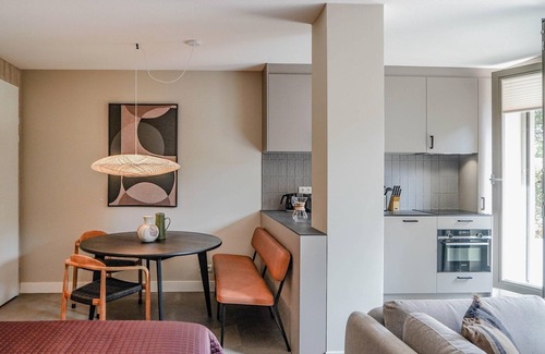 Smart Design, Cozy Living This thoughtfully designed studio offers modern comfort in a compact, eco-conscious space. Perfect for solo travelers or couples, it features a cozy lounge area, a private terrace for morning coffee, and a fully equipped kitchen for home-cooked meals. Smart touches like a Chromecast-enabled TV, in-unit washer/dryer, and solar-powered utilities make it ideal for both short getaways and extended stays. Guests also enjoy access to a free fitness room and a welcoming lobby with complimentary coffee and tea. Explore The Hague Like a Local Located in the heart of The Hague, this apartment offers easy access to iconic spots like the Peace Palace, Noordeinde Palace, and the artistic treasures of the Gemeentemuseum. The city’s beautiful beaches at Scheveningen are just a short tram ride away, while lush green spaces like Zorgvliet Park invite relaxing walks. Whether you're here for politics, art, or a blend of both, you'll be staying in one of The Hague’s most accessible and vibrant neighborhoods. Cafés & Cuisine at Your Doorstep Just around the corner, enjoy a variety of dining options. Try Café Franklin for a laid-back vibe, De Sushimeisjes for fresh Japanese bites, or Bistro Maurice for refined French-inspired cuisine. Craving something sweet? Bakkerij Hessing is a local favorite for pastries. This neighborhood balances convenience, charm, and culinary variety—all just steps from your door.