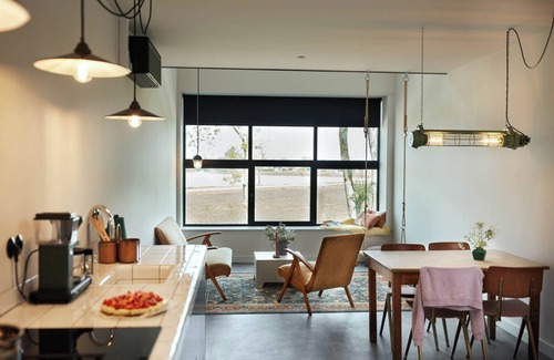 Suvelfabryk has the ideal accommodations to celebrate real life together. In this converted old dairy factory you can stay with your partner, family or group of friends in spacious, rugged and comfortable apartments. The interior is sturdy, but fully equipped with spacious, comfortable bathrooms, often with bath or spacious showers, large kitchens where you can really cook and eat together. In the garden of Suvelfabryk you can enjoy the beautiful, wide, unspoilt Frisian Wadden Country. The bedrooms are practical and comfortable, linen is included, as are tea towels. Suvelfabryk offers a local breakfast that can be ordered separately. In short, here you will find everything to (re)discover and celebrate real life!Apartment 11 resembles apartment 10, but is really different. Of course also spacious and wide. Large windows and also suitable for 4 people to cook together, live together and tell each other beautiful stories. Apartment 11 also has a beautiful wide balustrade, but it is more suitable for eating a home-made lunch and enjoying a regional beer, but ultimately you decide what you do. Here too, a beautiful loft, nice, complete kitchen, a bathroom with shower, two bedrooms with double beds and a separate toilet. In any case, everything to enjoy real life!The Suvelfabryk is located in Northeast Friesland at the foot of the Waddenzeedijk. Near the authentic fishing village of Paesens-Moddergat and a stone's throw from the Lauwersmeer National Park and close to the boat to Schiermonnikoog. Enjoy mudflat walking, if you want, by the moonlight. A nighttime walk with the ranger in the Dark Sky Park Lauwersmeer where you can see the Milky Way on clear days. Art in better museums in Leeuwarden and Groningen and exhibitions in special galleries, in cultural churches and in the open air. Theater in beautiful halls and in neighborhood cafes. Music, literally everywhere. Two hortuses and many special gardens. Sixty million migratory birds, sea eagles, buzzards, hawks, roe deer, hares and foxes. You can see them from your window. Everything is within reach. From nature to city. Upon arrival, a booklet will be ready with the special places and locations we have collected for inspiration.