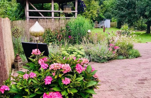 Inside, a carefully designed living and dining area awaits you, equipped with everything you need to make your stay comfortable. In addition to a ceramic hob and induction hob, the kitchen also has an oven, dishwasher, fridge-freezer, filter coffee machine and kettle for your morning routine. A cosy dining area invites you to enjoy meals together, while Wi-Fi and a flat-screen TV will keep you entertained even on rainy days. The separate bedroom with a comfortable box-spring bed promises restful nights and the adjoining shower in the bathroom ensures a fresh start to the day.