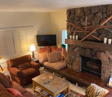 SV Wildflower Condo 3 Bed 3 Bath w SV INN pool access- No PETS! is a recently renovated apartment in Sun Valley where guests can make the most of the pool with a view and fitness center. This property offers access to a balcony, free private parking, and free Wifi. Guests have access to a hot spring bath, hot tub, and spa facilities. Featuring a terrace and mountain views, the spacious apartment includes 3 bedrooms, a living room, flat-screen TV, an equipped kitchen, and 3 bathrooms with a bath and a shower. Towels and bed linen are available in the apartment. There's also a seating area and a fireplace. Guests are welcome to eat at the on-site restaurant. Skiing and hiking can be enjoyed nearby, while a car rental service and ski storage space are also available on-site. Friedman Memorial Airport is 15 miles from the property.