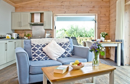 One of only three luxury lodges on an exclusive site in Braunton, this bright and airy property is open plan in design and invites total relaxation in a tranquil setting. Unwind in the beautifully styled living area or whip up a special meal together in the amply equipped bijou kitchen; stepping out through the French doors will lead you onto your huge, covered deck where a pair of sun loungers tempt a spot of sunbathing or catching up on a good book or two.