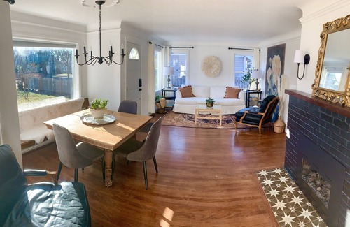 This recently renovated space has cozy and clean amenities and beautiful details to invite you to rest from the noise of the day. Curl up with coffee and a classic in front of the gas fireplace, school your loved ones over your favorite strategy game in the living room or serve up that family favorite that gathers everyone to the dining room table.