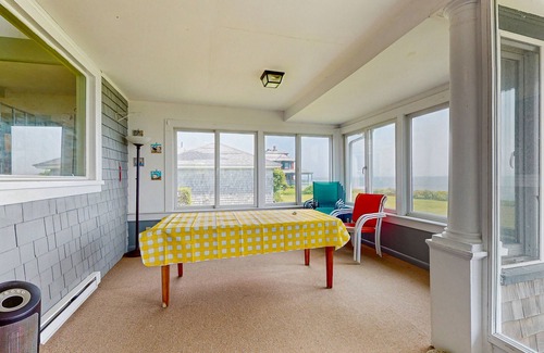 - Sweeping, dog-friendly, waterfront home w/a sun room, ocean views, & fireplaces