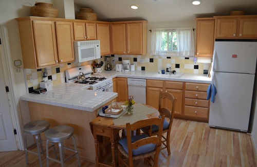 *Fully loaded cottage, private, separate with its own entrance, up one flight of stairs, complete 1 bdrm with en suite full bath (tub/shower combo), washer and dryer inside, full kitchen with full sized appliances, all kitchen utensils you could ever need plus oil, vinegar, tea, spices etc.