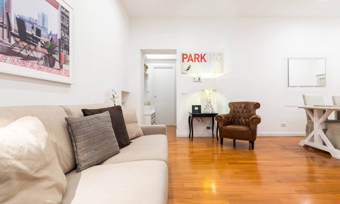 Hang a coat on the hooks accented with sweet wicker hearts. It is the little touches that make this apartment a gem, from furniture and artwork that combine to create a welcoming vibe to the botanical details that promote serenity.