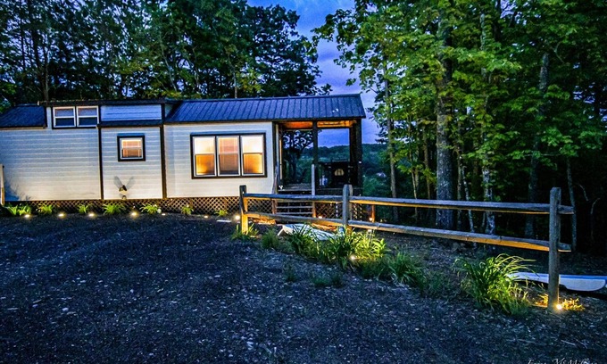 Come and enjoy the hot tub, firepit with an incredible View and listen to the rustling Creek below all in a Tiny House Experience!