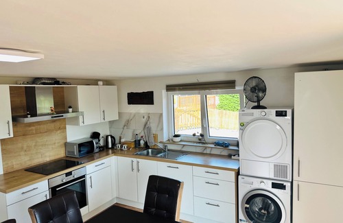 No need to pay for a restaurant every night, when you've got an oven, a stovetop, and a dishwasher on hand, as well as a microwave. Enjoy the WiFi and TV. Bathroom amenities include towels, toilet paper, and soap. And because there's a washer and dryer, you can go a bit lighter on your packing. Other amenities at this 2-bedroom, 1-bathroom rental include a BBQ grill, bed sheets, and heating.