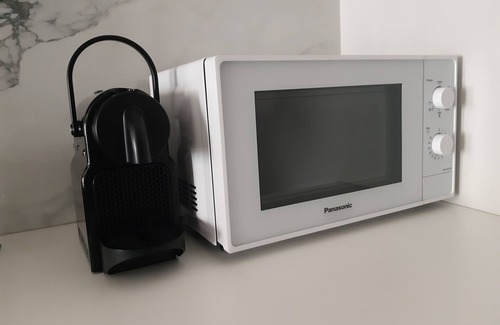 The kitchenette is equipped with a stovetop and a refrigerator, as well as a coffee maker, an electric kettle, and a microwave. Bathroom amenities include a hair dryer, a bidet, and bathrobes. And there's access to laundry facilities, so you can even pack a bit lighter. Other amenities include bed sheets, a desk, an ironing board, and bike storage.
