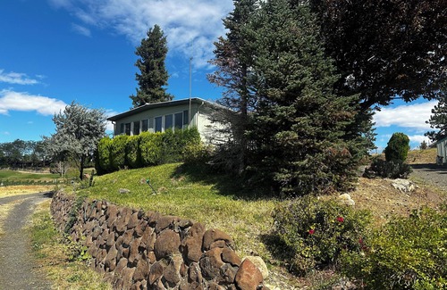 Relax and enjoy one of the best views of Yakima Valley. This newly refurbished one bedroom home resides a top a hill, we nicknamed "Mt. Vista." Watch the wild birds fly above, while the sheep graze below. If you are lucky, you might see two eagles fish in the pond. This is a private and quiet, clean and charming place to renew yourselves on the weekend. Complete with 70 inch Smart TV, AC, WiFi, and a simple kitchen, guests will have everything they need. Plus, it is conveniently located just 3-12 minutes from Yakima's hotspots or 30 minutes from the Yakima wine country.