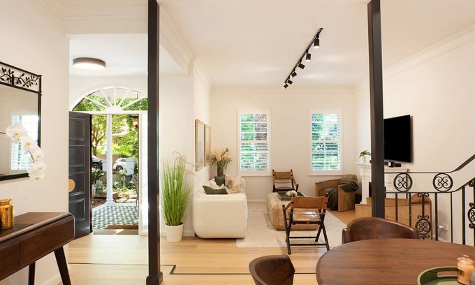 Double Bay is known for its leafy streets lined with beautiful properties, and this romantic home is no exception. Green-shuttered windows and decorative balconies peek out as you approach through lush, planted gardens, located in the heart of Double Bay.