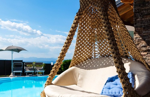 Villa located in Peschiera del Garda and surrounded by the green of the Lugana vineyards and thanks to its position it enjoys a spectacular view of Lake Garda.