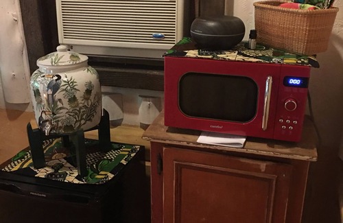 Cottage guests have access to a fully equiped kitchen/community room called the Chuckwagon, with 60 inch range, prep tables, refrigerator, freezer, sun-room, bathroom/shower, coffee maker and a beautiful cypress front porch with rocking chairs and farmhouse table. Cottage guests use the bathroom and shower in the Chuckwagon. This is a separate building about 25 feet from the cottage, connected by sidewalk and very well lit at night. There is NO BATHROOM in the cottage. I also have an outdoor wood-fired oven, fire pit, and charcoal grill. Through the summer, you’ll encounter migratory and native birds, hummingbirds, butterflies, lizards, raccoons, groundhogs, foxes, deer and owls along the paths cut through the pastures of wildflowers.