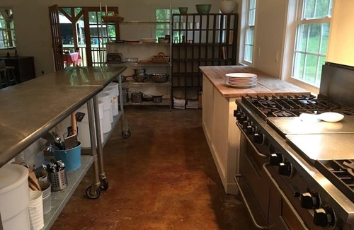 Downing Hollow Farm is a magical place full of sunshine and babbling creeks and mysterious forests. It’s a place you can watch the fireflies lift up from the pastures in June, hear the whippoorwill sing her lonesome song and enjoy the cool air drifting down through the hollow. Stay overnight in the cozy cottage and cook to your heart’s delight in a separate building called the Chuckwagon, a commercial kitchen, which also houses the bathroom, shower and a great front porch for relaxing and eating outside. There is no bathroom in the cabin, but the jaunt to the bathroom is short, with a sidewalk and well lit. Pets are are more than welcome, in fact, they are encouraged.