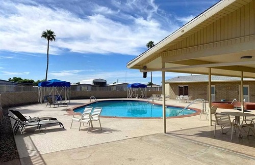 Sweet little Casita located in the heart of Yuma 55+ park Golf Cart included is located in Yuma. Sweet little Casita located in the heart of Yuma 55+ park Golf Cart included provides accommodation, featuring Air Conditioner, Security/Safety, Fireplace/Heating, among other amenities. This House features Air Conditioner, Security/Safety, Fireplace/Heating, to make your stay a comfortable one.