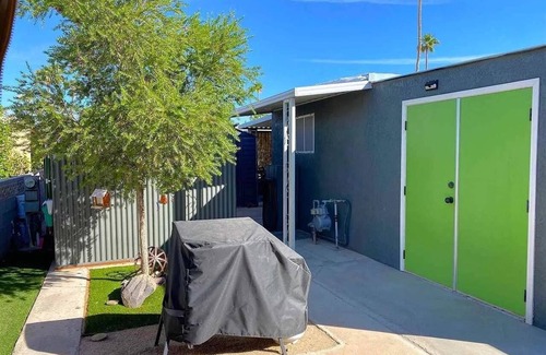 Cute little casita with lots of charm. Outdoor shower to rinse off after a dip in the salt water pool. Get around the property on the Golf Cart. Quiet neighborhood while still being in town. Large grapefruit tree that you can pick your breakfast.