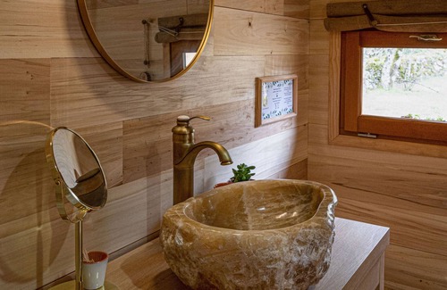 - Pretty cabin in beautiful gardens with wood stove & Nordic spa hot-tub/jacuzzi.