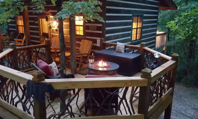 Sweet Retreat is perfect if you are looking for a quiet and private get-a-way. The kitchen is fully stocked for everything you may need to cook with. The living room has a cute love seat (with 2 recliners built in) and oversized log chair that sits right in front of the gas fireplace for you to enjoy in the cooler months. The 42" flat screen is above the fireplace and perfectly located so you can enjoy throughout all of first floor, by lying in the comfortable pillow top queen size log bed you can enjoy a movie or just watch some TV. Upstairs you have a full size private bath. You will be streaming HULU & Netflix. Other apps available on the smart tv if you would like to bring your login to use them.