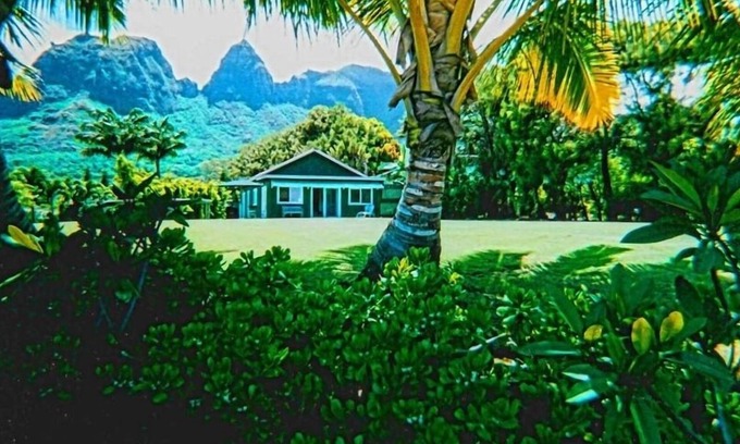 A Classic Kauai Cottage on Acres of Beautiful Grounds. Away from developments and the public. More Island Artsy Than Corporate. Two ceiling fan's in living room and one ceiling fan in bedroom. One floor fan. Nice, natural breeze normally.