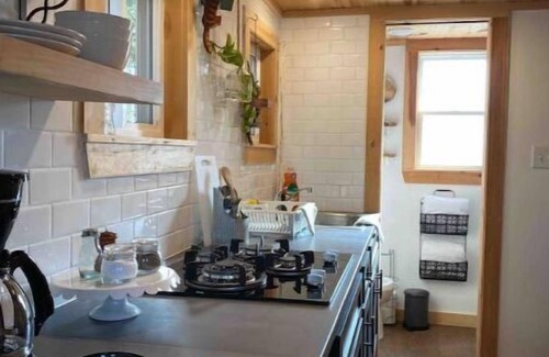 Tiny House has a tiny septic tank. Please conserve your water usage throughout your stay. Quick showers and considerate sink + toilet flushes go a long way. This is critical to staying at Tiny.