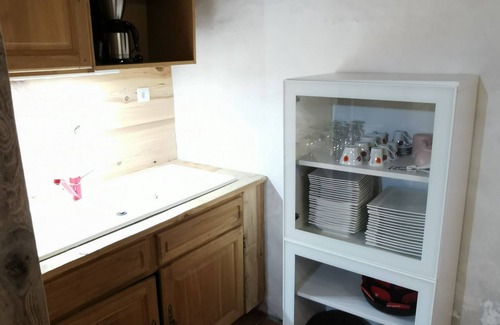 At your disposal: Kitchen equipped with a refrigerator and freezer, a 3-burner induction hob, a mini-oven, a sink, an Italian coffee maker and a filter coffee maker, a teapot, and everything you need for cooking. Sleeping arrangements: 1 large double bed (160x200cm) with a high-quality mattress, and 2 separable ‘mountain corner’ bunk beds with blackout curtains. A travel cot for babies under 3 years old can be added on request.