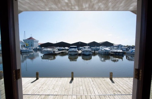 Wonderful and peaceful waterside three bedroom cabin with 33 foot private mooring and decking area. The living room opens directly onto the marina side decking with views across the marina and beyond. Because of this holidaymakers must be aware that there is no barrier at the edge of the marina and it is therefore not suitable for very young children to be left unsupervised.