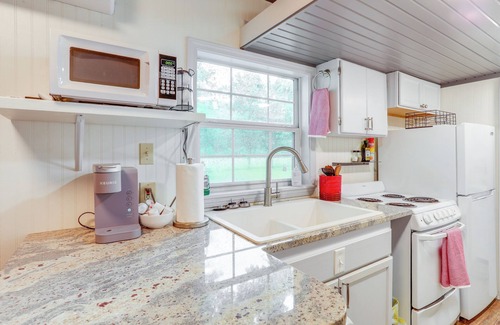 Adventure calls at this unique Mountain View vacation rental! Just steps away from the White River, this 1-bath studio is perfect for fishing, swimming, and taking in scenic views. After visiting Mirror Lake Waterfall or Blanchard Springs Caverns, enjoy a picnic by the water. This property also features a shared fire pit for roasting s'mores and gazing up at the stars. Your rejuvenating nature escape is just a click away!