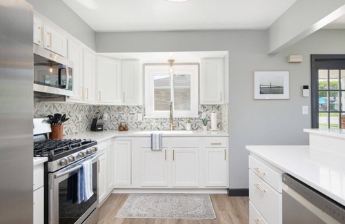 The recently remodeled kitchen boasts quartz countertops, a stylish backsplash, and new cabinets for a luxurious cooking experience. Create unforgettable memories in your private poolside and hot tub paradise!