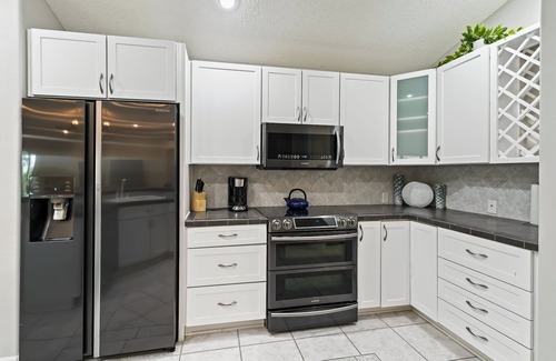 The fully-equipped kitchen is a chef's delight, complete with all the essentials for preparing gourmet meals during your stay. Conveniently located near the laundry room, it ensures easy access to clean up after culinary adventures.