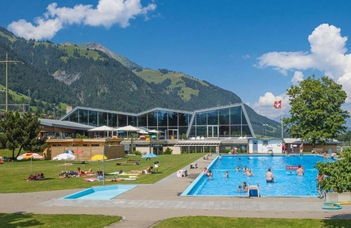 Frutigen with sports center, indoor pool, outdoor pool, sauna, horse riding