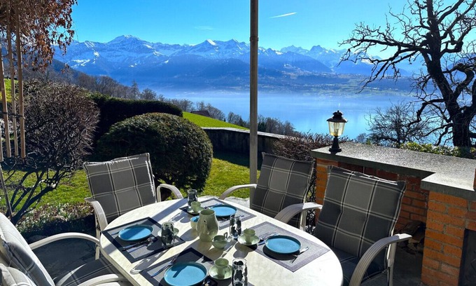 🌅 Terrace, garden, and balcony with breathtaking views of Lake Thun and the Alps
