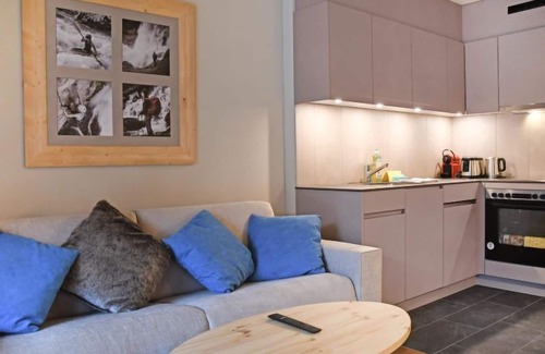 "2 room apartment STANDARD - Aare", 2-room apartment 39 to 44 m2. Comfortable and modern furnishings: living/dining room with 1 double sofabed (160 cm, length 200 cm), dining table, international TV channels and flat screen. Exit to the balcony, to the terrace. 1 room with 1 double bed (2 x 90 cm, length 200 cm). Exit to the balcony, to the terrace. Open kitchen (oven, dishwasher, 4 ceramic glass hob hotplates, electric coffee machine, Capsules for coffee machine (Nespresso) extra). Shower/WC. Underfloor heating. Parquet floors. Balcony 10 m2, south-west facing position or terrace 12 m2, south-west facing position. Terrace furniture, balcony furniture. Partial view of the mountains. Facilities: hair dryer. Internet (WiFi, free). Please note: suitable for families. Non-smoking house. 1 pet/ dog allowed. The property is one of a type of property or apartment. A fondue set (meet or cheese) as well as a raclette grill can be borrowed at the reception against a deposit.