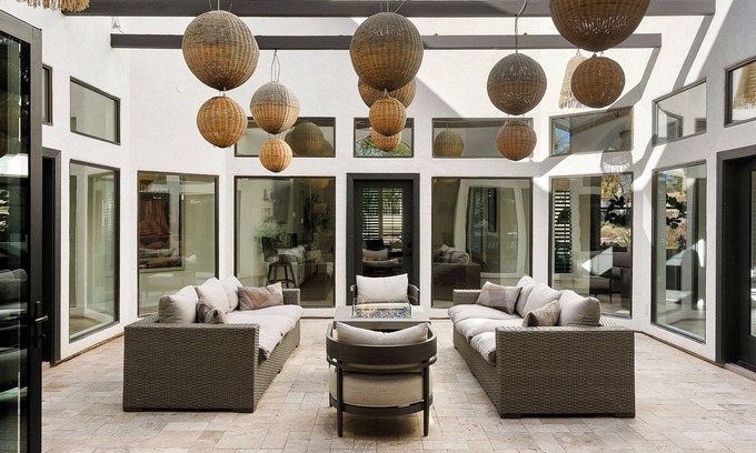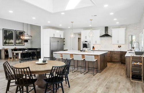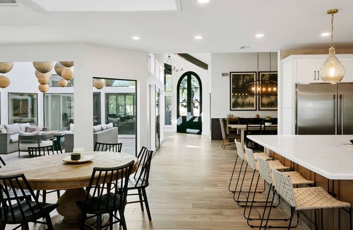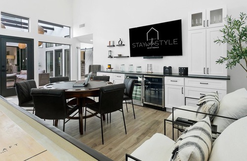 Book with StayWithStyleScottsdale Lantern Retreat — Nestled between Old Town Scottsdale and Kierland Commons/Scottsdale Quarter, this beautifully designed 4,400 sq ft home offers 6 bedrooms, 14 beds, and 4.5 baths on a lush private lot. Enjoy a resort-style backyard with a heated pool, hot tub, outdoor kitchen, sport courts, and fire pit. Inside, you’ll find designer interiors, a chef’s kitchen, game room, and a stunning open-air interior atrium.