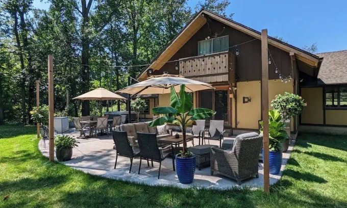 Sycamore House- Chalet on the Olentangy River has 3 Bedrooms , 2 Bathrooms, and max occupancy of 9 people. The minimum rental for this property is 1 nights, but this can change depending on the season you plan on staying. Previous guests have given good rated it, and VRBO labeled it a top-rated House because of the excellent services rendered by the owner or manager of this House, and has consistently provided great experiences for their guests. Most families or guests that use it recommend it to their friends and some of them are repeat guests. House has a friendly neighborhood, and the Delaware has interesting places to visit. If you want to learn more about the House in Delaware, such as places to visit and things to do nearby, you can check below to learn more.