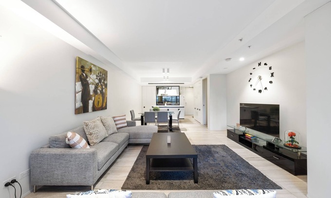Situated in the heart of the vibrant and bustling CBD, The apartment represents one of the best opportunities to enjoy relaxed yet sophisticated city living. Bathed in natural sunlight and exceptionally designed, this apartment is sure to check all the boxes. This iconic building is within short walking distance to Chinatown, Darling Harbour, U.T.S, Sydney Uni and Westfield Shopping Centre. Main features: - Air Condition in the entire apartment - Free Wi-Fi, Smart TV - Master bedroom with large closet and private en-suite - bed linens and towels - Fully equipped kitchen with the Gas cook, Oven, Microwave, Electric Kettle, Toaster, Pots, Plates, Cups, Cutlery etc. - Internal laundry with Dryer - Hairdryers, Shampoo, Conditioner, Body wash. - 1 queen bed, 2 single beds, 2 sofa beds in total, maximum 6 guests Parking: Indoor parking is available in the same building for $30 per day. Spaces are limited, so please check availability. Other things to note **Early check in and late check out** Available upon request and subject to availability. Extra fees may apply. Please make a request upon booking. **Extra cleaning service** Available upon request, during your stay. Please contact us and we can organise this for you. Additional costs apply. Please note the following House Rules before booking: 1. No smoking. There is a strict no smoking policy (including on balconies or terraces). Breaking this rule will incur a $300 fine plus the cost to clean and deodorise the property. 2. Strict no parties policy. No parties are permitted at any time. No unregistered guests are allowed. Any extra overnight visitors must be approved in advance and will have to pay an extra fee as set out in our rates. It is the responsibility of the guest who made the booking to ensure that any visitor/s also complies with our house rules 3. Please minimise noise between 9 PM to 8 AM. No excessive music or loud noise between 10PM to 8 AM to ensure our neighbours can enjoy a night of undisturbed sleep. Most of our neighbours live here full time. If any neighbours report excessive noise, your stay could be terminated and you’ll be asked to leave our property. Should this happen, it will result in a loss of the full reservation amount and be liable for any additional call out fees due to complaints. 4. We provide an initial supply of consumable household supplies and toiletries. 5. We understand that accidents do happen and kindly request that you report any accidental breakages or damages in writing before checking out. In the event that damage to the property or its contents is not covered by our insurance or it exceeds the security deposit, the cost to repair or replace will be billed to the guests. 6. Please respect our check-out policy. Departing after the designated check-out time of 10:00 AM incurs a $150 fee. This fee not only covers the additional resources required to accommodate late departures but also helps us maintain our commitment to punctuality and respect for all guests. You will be liable for any associated costs and additional fees incurred from damages, relating to our loss of a subsequent guest reservation or booking alternative accommodations for any part of the time you overstayed. Your cooperation ensures smooth operations and allows us to maintain our high standards of service. Thank you for understanding. 7. Lost keys or remote will incur a replacement cost of $250/set full apartment