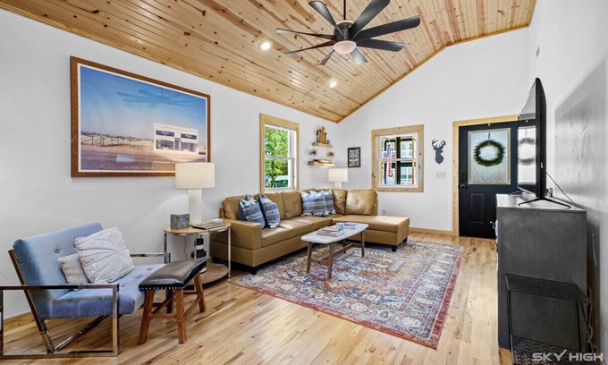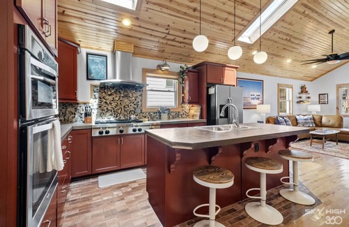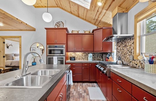Offering a range of amenities tailored for your comfort, TᕼE ᗰᗩIᑎ ᒪOᗪGE features two well-appointed bedrooms and two bathrooms, making it an ideal space for wedding parties. You will find a fully stocked, professional-grade chef's kitchen perfect for preparing celebratory meals, along with luxury linens and towels to enhance your stay. The home also includes high-speed Wi-Fi, Roku TVs, and lockable bike storage for outdoor enthusiasts. Enjoy your morning coffee on the serene back deck or host a casual BBQ, creating cherished memories amidst the lush surroundings.