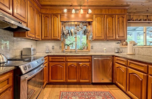 While you're here, you can enjoy all the comforts of home and more, including a rainfall showerhead and a full-sized refrigerator/freezer, as well as an oven and a stovetop. Other amenities include hypo-allergenic bedding, laundry facilities, towels, and kitchenware and utensils.