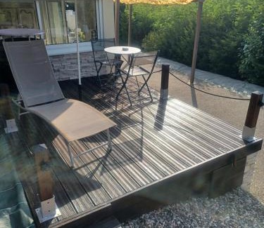 T1 Cosy "Clairefont" Terrasse privée vue Loire dans Maison is a recently renovated guest house in Aurec-sur-Loire where guests can make the most of the open-air bath and garden. This beachfront property offers access to a terrace, table tennis, free private parking, and free Wifi. The guest house has a ski pass sales point. The guest house also provides guests with a well-equipped kitchen with an oven, a microwave, and a fridge, as well as slippers. For added privacy, the accommodation has a private entrance and soundproofing. There is a coffee shop, and a mini-market is also available. The area is popular for windsurfing and cycling. In addition, bike rental and car rental are available at this guest house. Skiing and golfing can be enjoyed nearby, while a ski equipment rental service, a private beach area and ski-to-door access, are also available on-site. Zénith de Saint-Etienne is 16 miles from the guest house, while Geoffroy-Guichard Stadium is 16 miles away. Le Puy – Loudes Airport is 48 miles from the property.