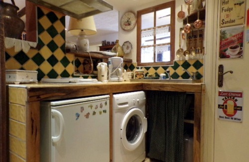 Charming 2 rooms consisting of a large living room with a single bed, table, chairs, TV, DVD kitchen with fridge, washing machine, microwave, minibar, hotplates, bathroom, a bedroom with double bed, desk, wardrobe, chest of drawers, wifi