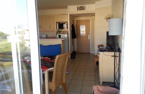 1 bedroom, with double bed, a sleeping area, with porthole, with 2 bunk beds, kitchen open to the living room, pull-out sofa bed (2 or 3 people) microwave oven electric hob, griddle, refrigerator, dishwasher, coffee maker with filter, etc.... separate WC and bathroom, television, flat screen the apartment is equipped with air conditioning. Collective garage, and parking in the residence.