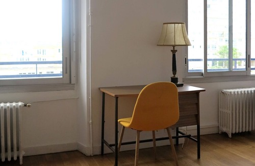 Les Abeilles, a place of artistic and tourist residence, sits off the coast of a historic district of Saint-Nazaire, living to the rhythm of the ocean. A real estate investor and an artist have teamed up to give an atypical life to this building of the 1950s, former offices of the Union des Remorqueurs de l'Océan. The cargo ships run alongside the building daily when they enter or leave the lock, offering a unique spectacle. This apartment faces the lock and ocean side. Place of rest, work, and inspiration, Les Abeilles welcome tourists, locals, and creatives from all walks of life.