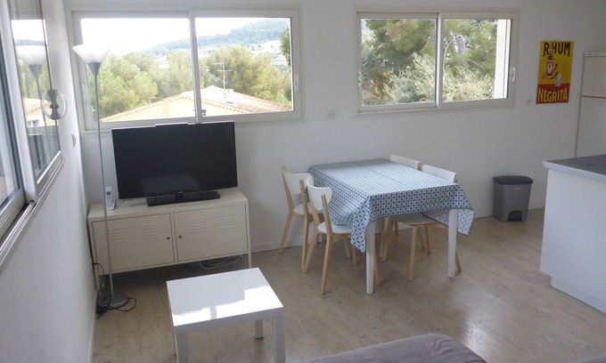 T2 apartment in recent villa in Cadière d'Azur is located in La Cadiere-d'Azur. T2 apartment in recent villa in Cadière d'Azur provides accommodation, featuring Balcony/Terrace, Security/Safety, Internet, among other amenities. This House features Balcony/Terrace, Security/Safety, Internet, to make your stay a comfortable one.