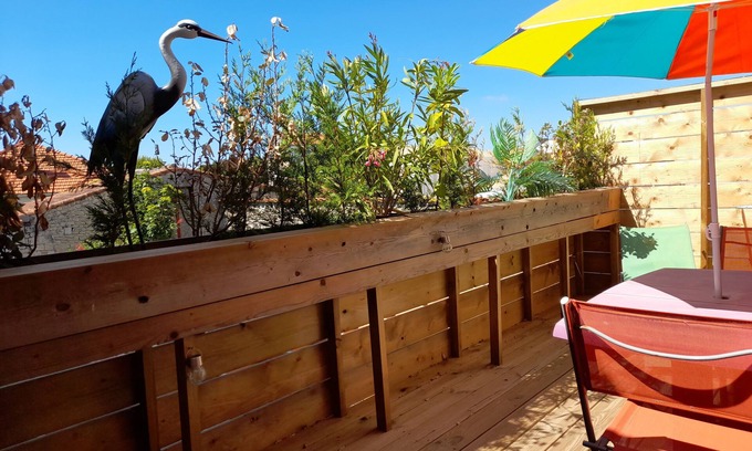 A large studio-cabin of 25 m² on the ground floor with garden-deckchair-BBQ (BOYARD accommodation) and on the first floor a beautiful bright T2 OF 35 m² (NEPTUNE accommodation)