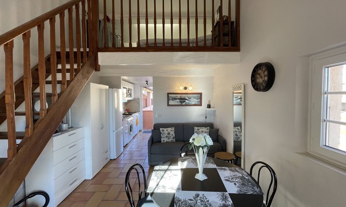 T2 Provençal style with mezzanine bedrooms and 140 cm bed