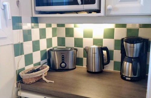 Prepare a home-cooked meal in the kitchen, complete with a stovetop, a refrigerator, and a dishwasher, as well as an electric kettle, a microwave, and cookware. Bathroom amenities include a hair dryer, towels, and soap. And because there's access to laundry facilities, you can go a bit lighter on your packing. Other amenities include a living room, bed sheets, housekeeping, and heating.