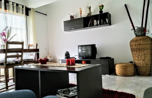 The apartment has 1 kitchen, 1w. c., 1 double bedroom, 1 bedroom with 2 single beds and living room with 1 sofa bed fully furnished and equipped with TV and machine. of coffee.