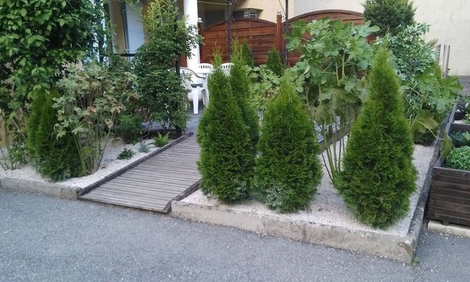 - The terrace, surrounded by plants and thuyas, gives you additional space and allows you to take your meals outside.